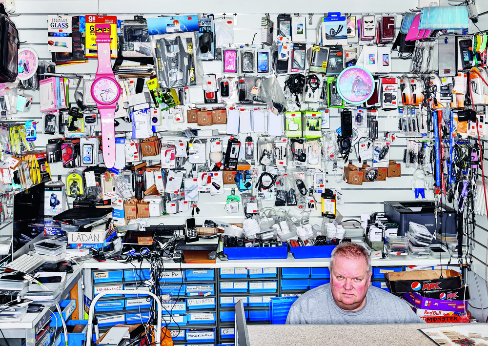 Bland laddkablar, reservdelar och mobilfodral vakar Peter Skagerström över sitt rike.