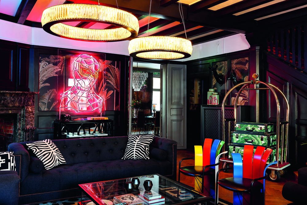 I salongen på Club House står soffor i rosa skinn. Tavlorna skriker popkonst. En skylt ovan dörren lyser: Honesty Bar. En samling bordsspel står uppställda under glas och över ett av borden hänger ett konstverk där orden ”ILLUMINATUS – what were we thinking?” sticker ut i gult och rött. Det är både inredning och självreflektion.